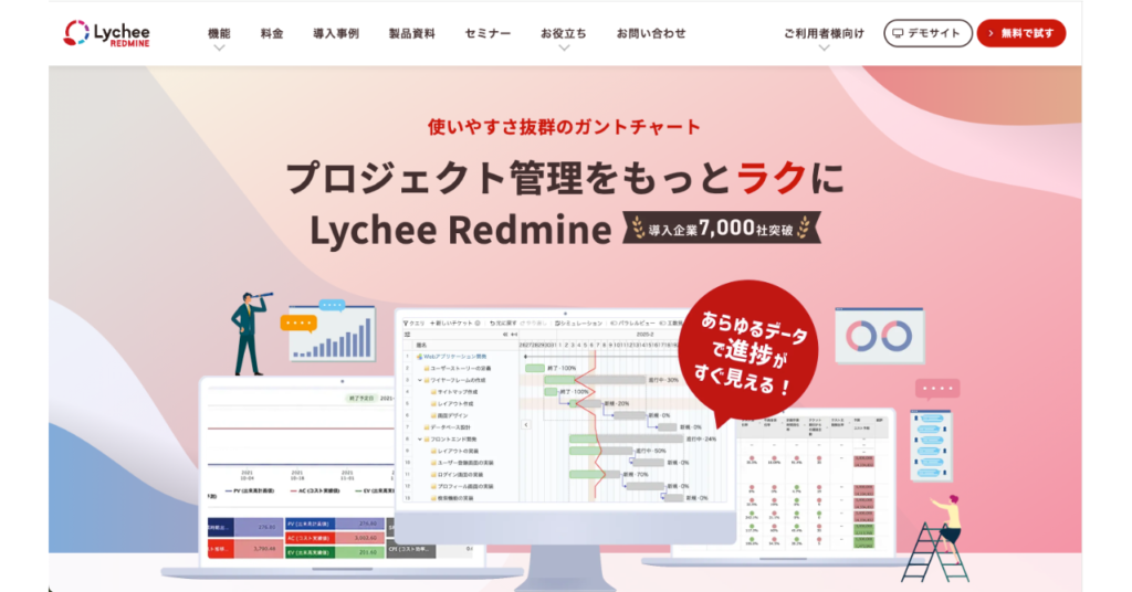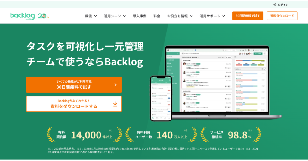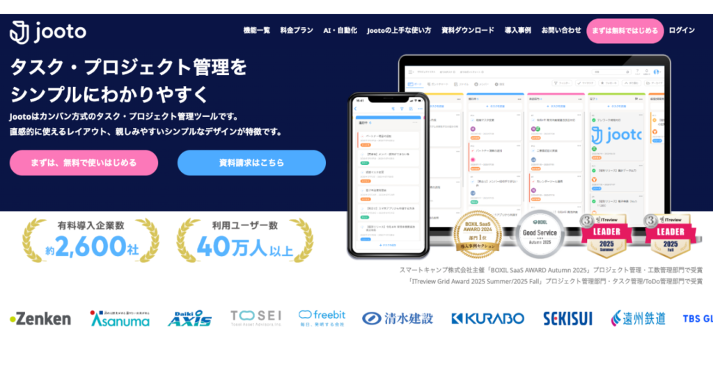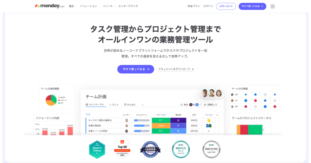どちらかといえば「プロジェクト全体の動きを管理したい」マネージャー視点に強いツールで、進捗・タスク・工数をまとめて管理したい企業に向いています。