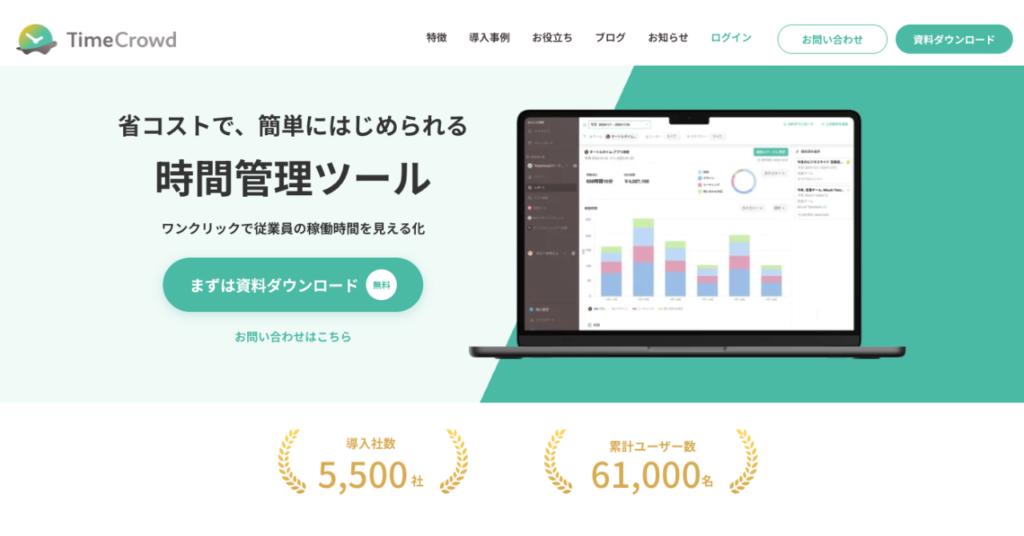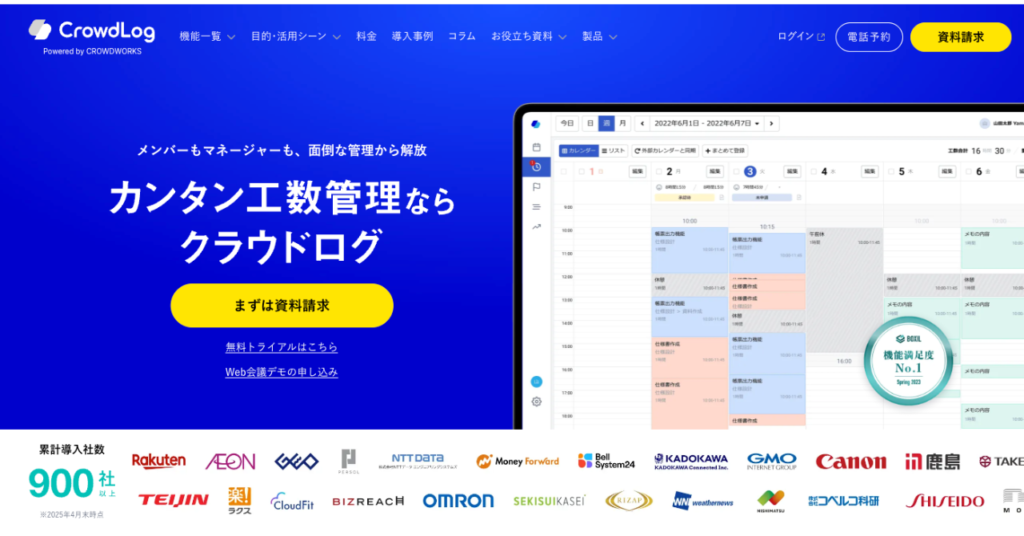 クラウドログ(CrowdLog)は、案件単位・タスク単位で工数を簡単に記録できるクラウド型ツールです。タイマー計測と手動入力の両方に対応しており、現場のスタイルに合わせた柔軟な運用が可能です。ブラウザ上で「誰が・どのプロジェクトに・何時間使ったか」をリアルタイムで可視化できます。