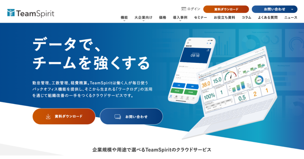 一方、中〜大規模向けツールは、ERPや勤怠システムとの連携機能を備え、1ユーザーあたり2,000円前後が相場。TeamSpiritやZACのように、会計・人事・工数を統合管理できるタイプが代表的です。